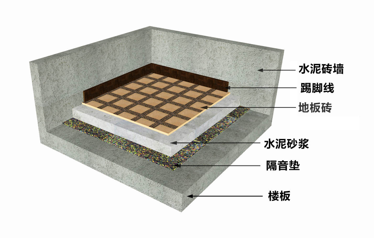 浮筑地面做法是一种有效的隔音减振技术,广泛应用于各种需要降低噪音和振动的场所,如住宅、学校、医院等。下面介绍浮筑地面的做法:
