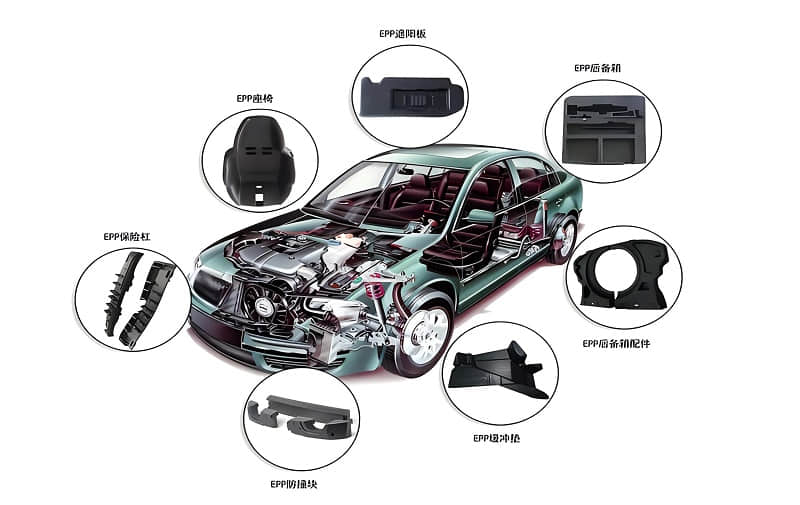 4、冷却定型:成型完成后,将模具放置在冷却设备中,使EPP汽车零部件逐渐冷却定型。冷却过程中,应避免产品变形和开裂等问题。