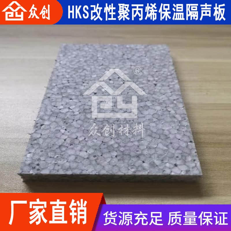 HKS改性聚丙烯保温隔声板是由浙江众创材料科技有限公司研发生产的新型epp楼地面保温隔声材料,主要是为了解决楼层与楼层之间的保温隔声问题。